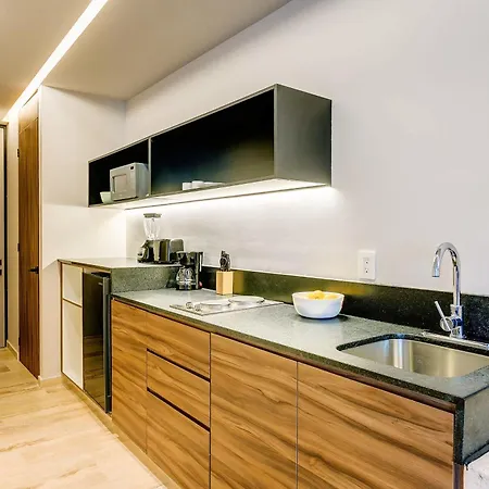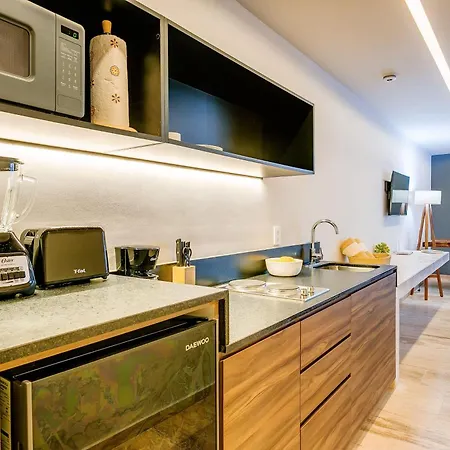 Les installations indépendantes comprennent une cuisine complète équipée de micro-ondes, ainsi que d'une cafetière/théière. La gare routière ADO Tourist Terminal se trouve à proximité du domicile de 54 m^2, à 10 minutes à pied. La résidence dispose d'une piscine en plein air. Pour une expérience de séjour améliorée dans le logement, les clients ont également la possibilité d'assister à des cours de fitness.
